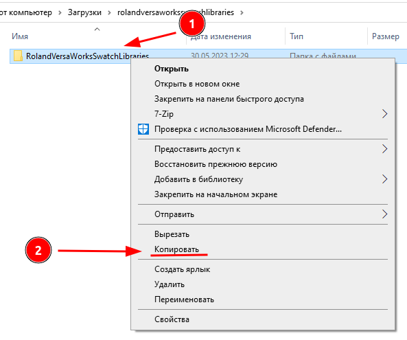 - Открыть извлеченную папку, нажать правой кнопкой по папке с образцами и выбрать копировать