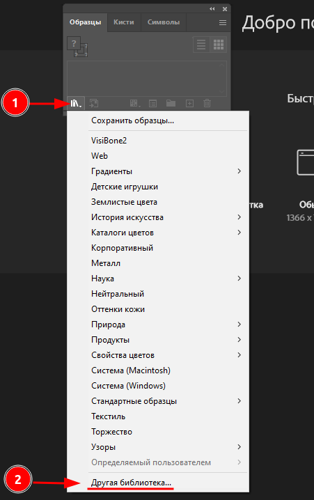 Установка образцов цветов(swatches) в Adobe Illustrator