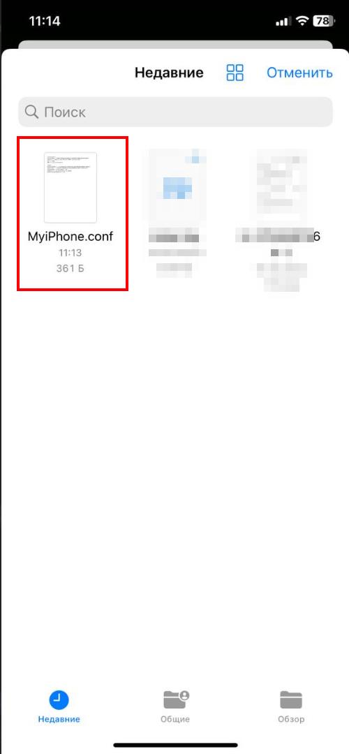 3.2 Найти загруженный профиль(пропустить шаг если выбрали не импорт файла)