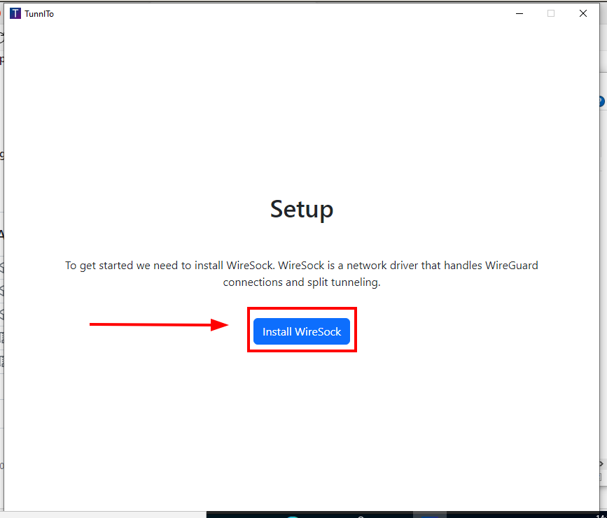 3.2 Нажать Install WireSock - Сгенерировать профиль для подключения